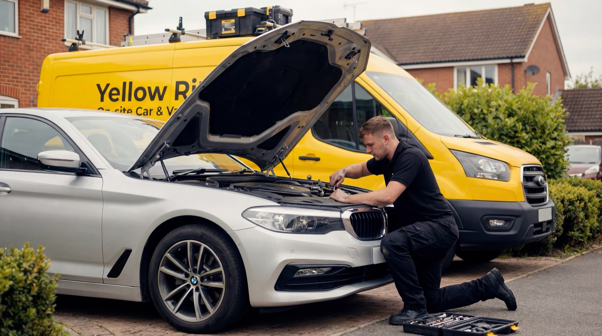 A qualified mechanic arrives at your location with everything needed. Pay securely online.